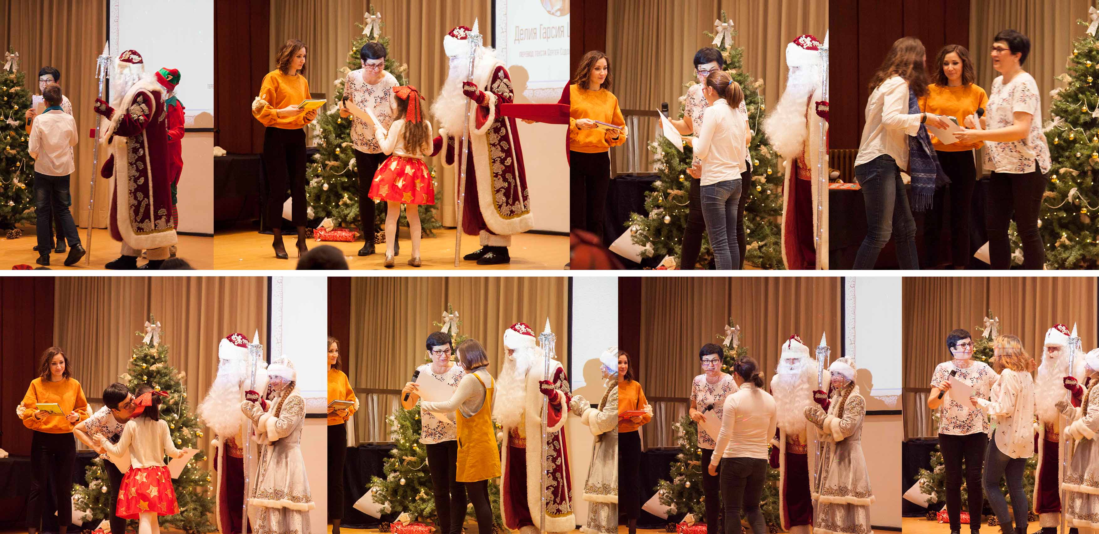 Los alumnos ganadores de los premios de traducción recibieron diplomas y regalos de la mano de nuestras profesoras, Снегурочка y Дед Мороз.